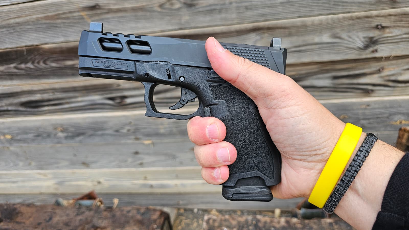 עוד לפני שאוחזים ב-PSA דאגר קומפקט, מבינים שיש פה פרשנות מאוד מעניינת של היצרנית לאיך אקדח קומפקטי ראוי להראות ולהרגיש. אם לרגע דמיינתם שבגלל שדגם זה מבוסס על גלוק 19 הוא גם יראה וירגיש כמוהו, המפגש עמו עושה לכם ריסט מהיר למחשבות. נתחיל כמעט מהסוף – למעשה, מלבד לחצני פירוק הצינה, עצר המחלק ומנגנון הירי הפנימי, לא מצאנו כל דמיון ויזואלי לבין המקור עליו הוא מבוסס. וזה טוב? לטעמנו כן. תמיד טוב לגוון, בטח כשדגמי גלוק המוכרים נראים כל כך שבלוניים, רבועים ו… כן, משעממים. פתאום הדאגר קומפקט נראה רענן ומפתה מאוד. מידותיו הן: 181.6 מ"מ לאורך, 121.4 מ"מ לגובה, 32.5 מ"מ לרוחב, אורך הקנה 99 מ"מ ומשקלו 635 גרם.