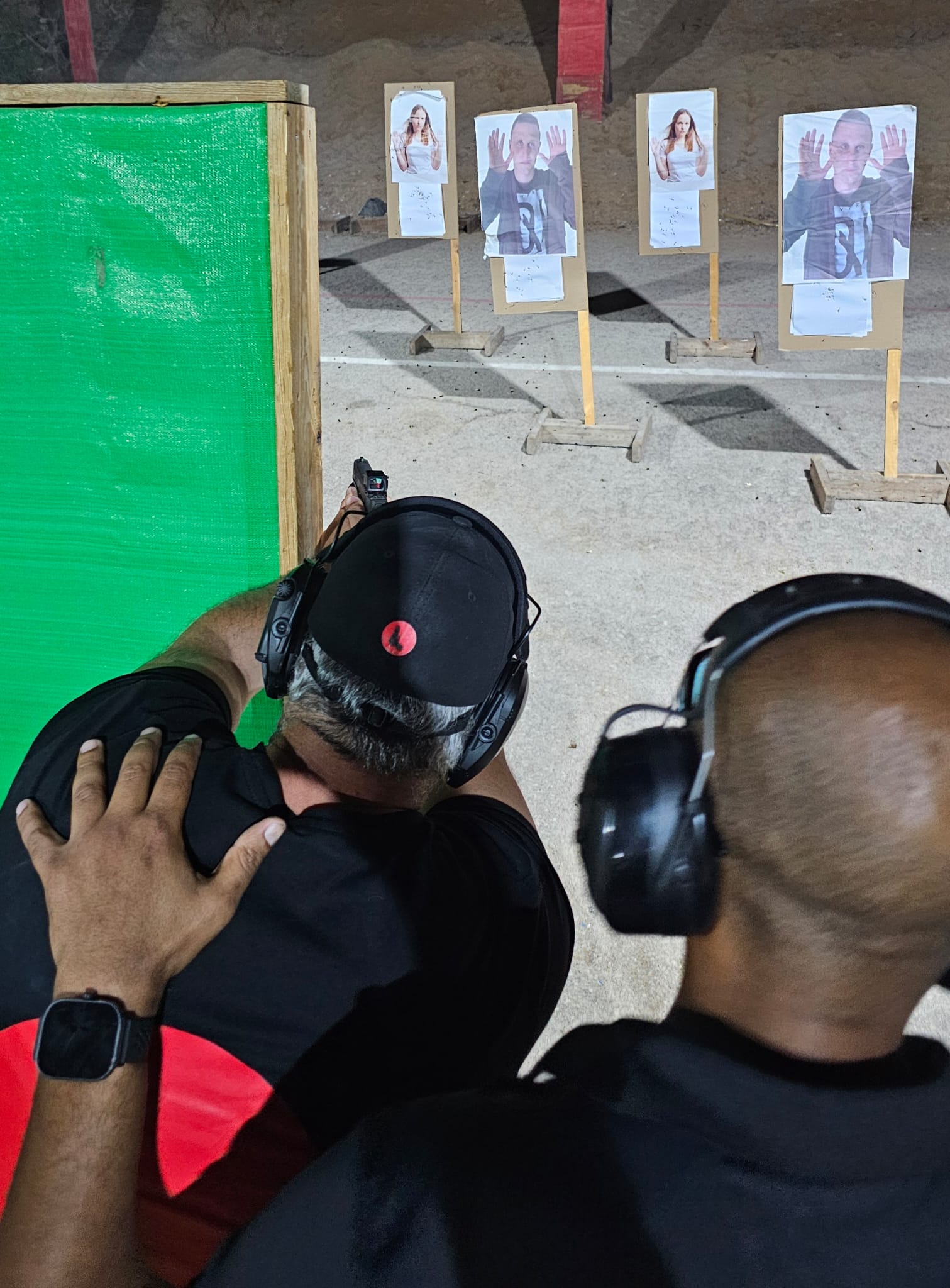 כפי שהורגלנו כבר, כל המודרכים, 15 במספר עם 2 מדריכים ושני מפקחי מטווח מנוסים, התכנסו ביום חמישי בשעה 17:00 במטווח ש.פ אשדוד והרישום בוצע עם קפה ועוגיות שחיכו לכולנו. כמו כל אימון קודם, אנו מתחילים בתדריך בטיחות חשוב ונחוץ. עם בטיחות לא משחקים. המדריכים הסבירו את מהות התרגיל ובקצרה על מה נעבוד הפעם. פרקנו נשקים, הרכבנו תותבים והתחממנו בתרגילים יבשים של שליפה, דריכה ונקירה אל כיוון המטרות.